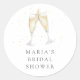 Um adesivo de chá de panela festivo e elegante apresenta um par de óculos de champanhe em salto em aquarela, cheios de espuma. Personalize com seu nome de evento em caracteres de cinza. Perfeito para selar envelopes de chá de panela ou como um toque final para favores.