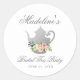 Adesivo Redondo Chá de panela Tea Party Floral Rosa Prata