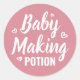 Este design apresenta "Poção do Fazer Bebê" em um fundo cor-de-rosa rosa empoeirado com corações brancos. Todo o texto é editável e a cor de fundo pode ser alterada para corresponder ao tema do chá de fraldas. Adicione essas etiquetas a mini garrafas de seus licores, cervejas, vinhos ou champagnes favoritos por um favor engraçado e fofo que todos adorarão.