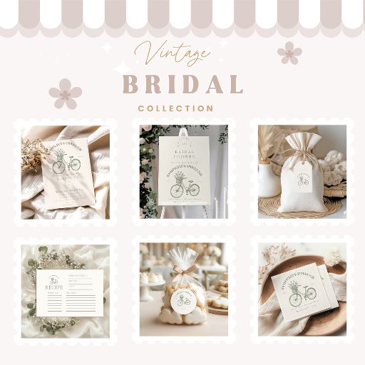 Celebrar a noiva com este charmoso design de chá de panela floral escolhido à mão, com um carregando de bicicleta vintage, um cesto de flores silvestres. A maleável paleta verde e marfim evoca uma sensação romântica de campo, fazer-a perfeita para um mercado de fazendeiros ou evento inspirado em jardim. Personalize com seus detalhes de evento para um na moda e um encontro memorável.
