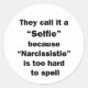 Para o amante sarcasmo em todos nós. Confira essa testemunha "Eles chamam de Selfie porque Narcissistie é Duro demais para soletrar" na roupa e presentes.