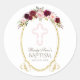 Adesivo Redondo Charming Burgundy Marsala Floral Baptism Monograma