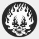Crânio malvado, fumante de charutos com chamas à volta da cabeça e dos olhos. B/W, arte história em quadrinhos ao estilo estêncil, em t-shirts, camisolas, impressões, presentes.