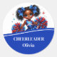 Este adesivo redondo clássico é mostrado com um impressão de cheerleader bonitinho com um nome de amostra, personalize com este modelo e mude o nome para o seu. Personalize este item com este modelo. Imagem licenciada