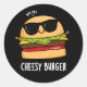 Adesivo Redondo Cheesy Burger Engraçado Comida Torna Escuro BG