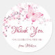 A cereja rosa bonito floresce uma linda borboleta rosa e obrigado que você fala em um roteiro caligráfico elegante. Este adesivo combina com a minha pequena papelaria de chá de fraldas de borboleta. Personalize-o com o seu nome.