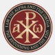 Ícone do quiristograma qui-ro com letras alfa e ômega. Monograma formando abreviação para o nome de Jesus Cristo. Cor de fundo personalizada. Dois campos de texto personalizados em círculo.