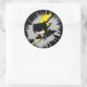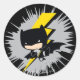 Chibi Batman faz um chute voso contra um raio de fundo.