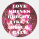 Adesivo Redondo Chic Bold Pink Gliter Retro Disco Balls Obrigado