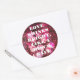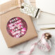Você ama os anos 80? Você ama bolas de disco? O Chic Bold Pink Glitter Retro Disco Balls Obrigado O Classic Round Sticker apresenta bolas coloridas de disco cercadas por efeitos digitais brilhantes cor-de-rosa. Este adesivo de casamento rosa-chic é perfeito para um casamento retrô divertido e divertido.