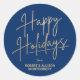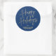 Adesivo Redondo Chic Gold Script Happy Holidays Blue