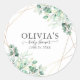 Adesivo Redondo Clássico Chá de Bebê Chic Greenery Moderno Eucalipto Dourado. Com folhas de eucalipto aquareladas e uma moldura geométrica dourada.