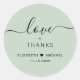 O adesivo verde do sábio para seus favores de casamento e cartas de agradecimento com "obrigados + amor" em uma mistura de simples letras e um roteiro elegante com baloiços, seus nomes se juntaram por um coração e sua data de casamento.