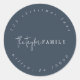Estes adesivos circulares de endereço de retorno da família de marinhos quic modernos são perfeitos para um cartão de feriado ou envelope de convite. Este simples design boho apresenta caligrafia sofisticada clássica em azul e branco marinho escuro rústico.
