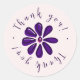 Adesivo Redondo Chic Script Font - Obrigado! - Flor Roxo