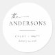 Estes adesivos redondos simples e modernos são o toque perfeito para os seus favores de casamento ou sacos de presentes! Apresentando uma fonte de script manuscrita emparelhada com fontes serif e sans serif simples. Personalize os adesivos com o seu novo sobrenome, os nomes dos casais e a data ou o seu próprio subtexto. Se você ama esta design moderna minimalista, procure na loja mais essências de casamento como esta!
