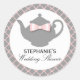 Um belo design de chá chá de casamento em cinzas quentes, rosa e branco faz ótimos adesivos de favores para uma Festa de Chá Chá de panela. Enquanto que, elegante, a silhueta de um bule enfeitado com um arco cor-de-rosa faz deste adesivo um belo lembrete da maravilhosa festa de chá segurada para a noiva ser. Disponível em várias cores.