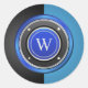 Adesivo Redondo Chip de pôquer preto e azul com monograma personal