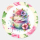 Adesivo Redondo Chique Floral Birthday Cupcake