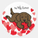 Adesivo Redondo Chocolate Labrador Puppy Mastigando Namorados