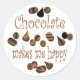 Amantes de chocolate vão gostar desta deliciosa design com doces de chocolate e as palavras Chocolate me faz feliz. Aproveite!