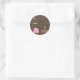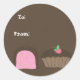 Uma design divertida para um amante doce. Fundo de chocolate com dois chocolates jovens. Um com enchimento cor-de-rosa e um pouco de cereja em cima do outro. Personalizar conforme desejado.