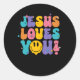Adesivo Redondo Christian Retro Jesus Te Ama Fé Religiosa