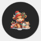 Adesivo Redondo Christmas Highland Cow Cute Heifer Cow Santa Hat M