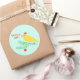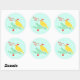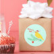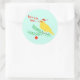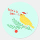 A Christmas, yellow singing canary wearing a Santa hat and perched on holiday greenery. He sings a Christmas tune of, "Fa la la la laaa..." Canary lovers are sure to enjoy this festive pet bird design for Christmastime! It's shown here on a sheet of round stickers. Customize it any way you prefer and change the mint green background color to your favorite color. More sticker shapes and sizes are available. Decorate greeting cards, packages, party treat bags, and more with this design for bird lovers!