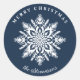 Adesivo Redondo Christmas Snowflake Navy Blue Custom Holiday