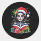 Adesivo Redondo Christmas Sugar Skull Art Woman Santa Hat Festive