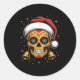 Adesivo Redondo Christmas Sugar Skull Art Woman Santa Hat Festive