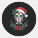 Adesivo Redondo Christmas Sugar Skull Art Woman Santa Hat Festive