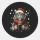 Adesivo Redondo Christmas Tiger With Santa Hat Coffee Lover Funny