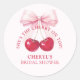 Sele os favores ou envelopes com esses adesivos redondos Elegantes Cerejas no Topo. Mostrando cerejas em aquarela brilhante e um lindo laço rosa, eles adicionam um toque final doce e romântico aos detalhes do seu chá de noiva.