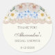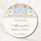 Este adesivo de agradecimento personalizado para chá de panela de noiva com hortênsias azuis peônia apresenta um arranjo romântico de hortênsias suaves azuis e brancas, complementado por peônias rosa empoeiradas e brancas, tudo isso colocado contra um elegante fundo marfim vintage. O delicado detalhe de renda bege adiciona um toque de sofisticação, capturando perfeitamente o charme feminino de um chá de panela floral. Inspirado na decoração e moda atemporais de Nancy Meyers, este adesivo de agradecimento é o toque final ideal para os brindes do seu chá de panela. Expresse sua gratidão com um toque de elegância e beleza, fazendo com que seus convidados se sintam verdadeiramente apreciados.