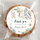 Sele as convites, bolsas de favor e presentes de agradecimento com esses adesivos redondos de aquarela sonhadora! Flocos de neve azuis suaves, folhagens delicadas e toques de dourado combinam perfeitamente com a nossa coleção de baby shower Clothesline Little Snowflake. Use em envelopes, caixas, copos ou como selos de festa doces. Os convidados vão adorar o toque de inverno elegante!