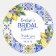 Adesivos Redondos Clássicos Italian Mosaic Blue Tile Lemons Bridal Shower