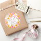 Adesivo de agradecimento de chuva de noiva floral rosa amarela em aquarela, apresentando rosas cor-de-rosa pintadas à mão, girassóis amarelos e outras lindas flores de jardim com uma fonte de pincel moderno.