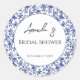 Adesivo Redondo Clássico Chuva de Noiva Floral Azul Elegante para uma festa temática toile moderna dá um charme à sua celebração