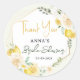 Adesivo Personalizado de Agradecimento para Chá de Noiva Floral de Eucalipto Limão Envie sua sincera apreciação com estilo com este Adesivo de Agradecimento para Chá de Noiva Floral de Eucalipto Limão. Com elegantes limões aquarelados, rosas suaves de marfim e rosa, e delicada folhagem de eucalipto, este adesivo redondo adiciona um toque fresco e encantador a sacolas de lembranças, caixas de presentes, envelopes e mais. O "Obrigado" em letra cursiva dourada e o texto personalizável tornam-no um par perfeito para qualquer chá de noiva com tema de limão, cítrico ou mediterrâneo.