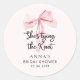 Chuva de Noiva Laço Rosa Ela Fazendo um Casamento Adesivo Redondo Clássico. Itens correspondentes disponíveis.