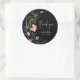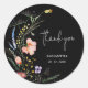 Adesivos elegantes para chuva de noivas pretos com flores silvestres em aquarela, agradecimento, seu nome e data da festa em letras sofisticadas. ITENS COINCIDENTES em nossa coleção.