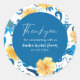 Este design floral de aquarela apresenta flores elegantes de aquarela em cor amarela com fundo italiano azul e branco. Adesivos de agradecimento elegantes e modernos para lembrancinhas de chuva de presentes de casamento azul. Mensagem-me com qualquer ajuda ou pedidos personalizados.