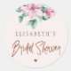 Adesivo Redondo Chuva rosa em aquarela floral script chá de noiva