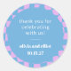 Esses adesivos personalizados apresentam um padrão xadrez azul e lavanda divertido, adicionando um toque moderno e caprichoso à sua celebração. Perfeitos para selar envelopes, decorar sacolas de lembranças ou adicionar um detalhe divertido à decoração da festa, são uma escolha versátil para casamentos, chá de bebê, aniversários e muito mais. O texto branco nítido no centro destaca lindamente a sua mensagem sincera de gratidão, juntamente com os nomes e a data do seu evento. Esses adesivos são uma maneira simples, porém elegante, de unir seu tema e deixar uma impressão duradoura nos seus convidados.