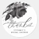 Envie agradecimentos com esta etiqueta personalizável para chuveiro nupcial. Ela apresenta rosas pretas em aquarela. Personalize adicionando seus detalhes. Este adesivo de agradecimento floral preto é perfeito para qualquer evento.