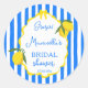 Ciao Bella Dolce vita Limões listras azuis modelo de adesivos personalizados para chá de panela italiano, adesivos personalizados com monograma para chá de panela com limões cítricos e listras azuis; adesivos impressos para chá de panela italiano de verão, adesivos de agradecimento vintage para chá de panela italiano, adesivos de presente personalizados com borda ondulada e charmosos para chá de panela