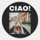 Adesivo Redondo Ciao Funny Gondolier Cat Em Um Gondola Venetiano