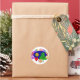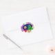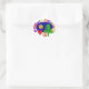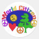 Um design de arco-íris colorido de símbolos de paz para protestar contra a guerra, uma árvore e o sol para salvar os recursos do planeta, e um coração para amar umas às outras gravatas nas palavras: "Cidadão do Mundo."